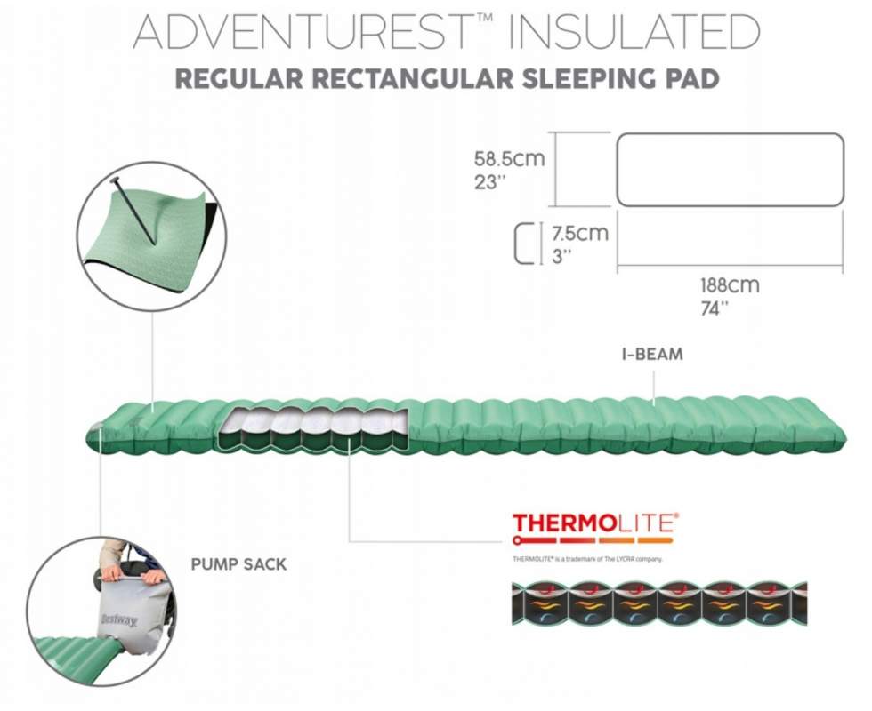Bestway 69617bw, надувной матрас-каремат 188 x 58,5 x 7,5 см кемпинговый