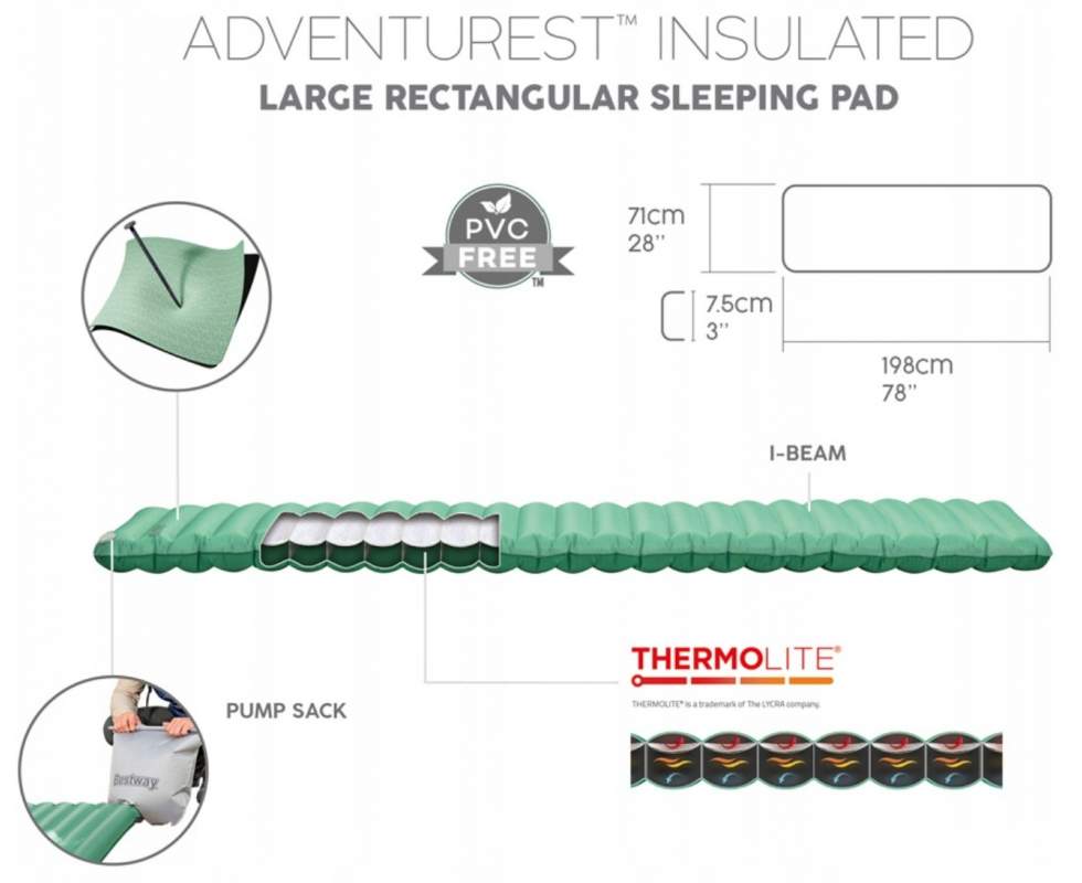Bestway 69618bw, надувной матрас-каремат 198 x 71 x 7,5 см кемпинговый