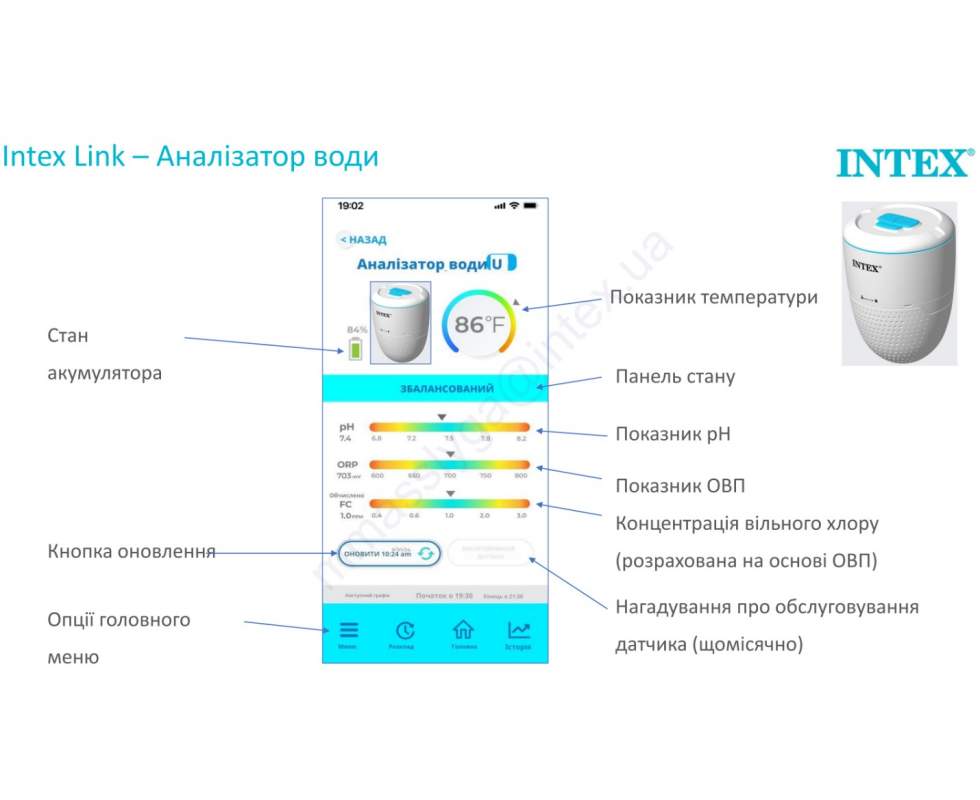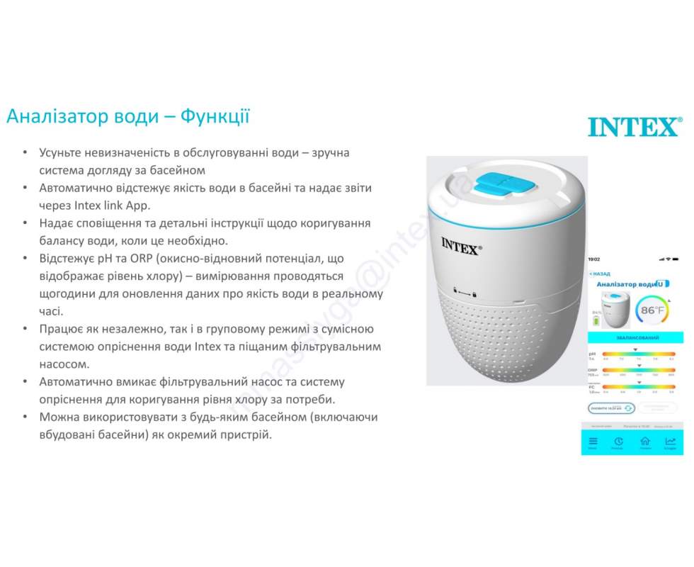 - Intex 28607, Анализатор воды WiFi для показателей pH и Cl