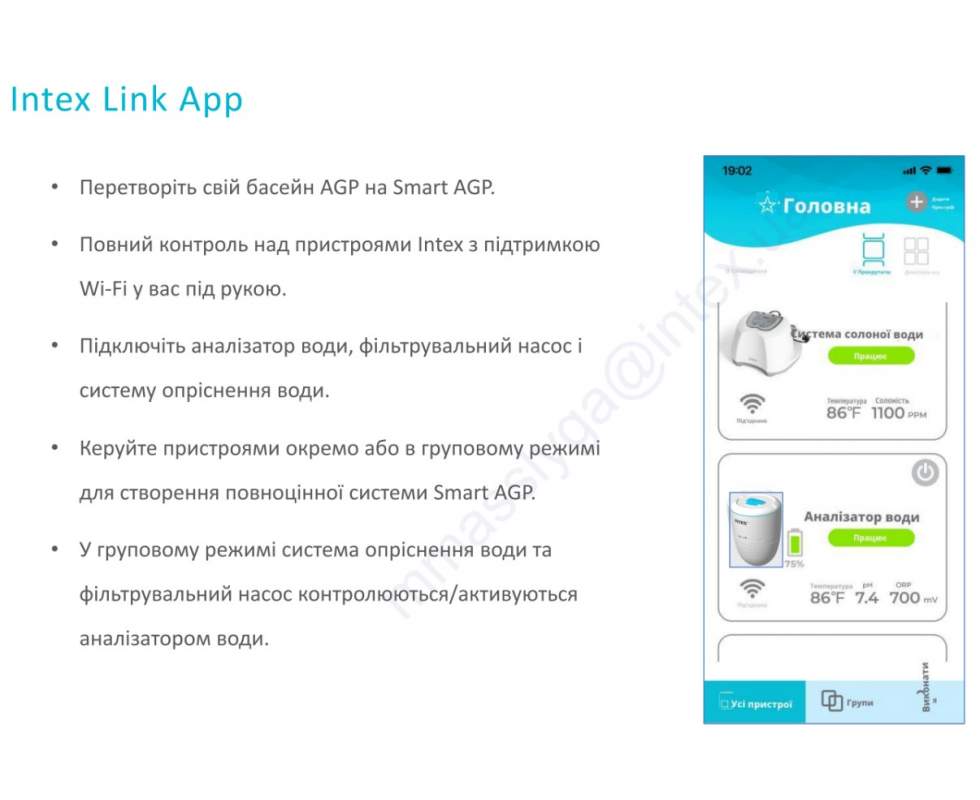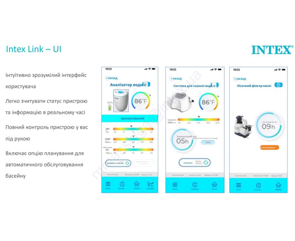 Автоматически отслеживает качество воды и передаёт данные через приложение INTEX Link®