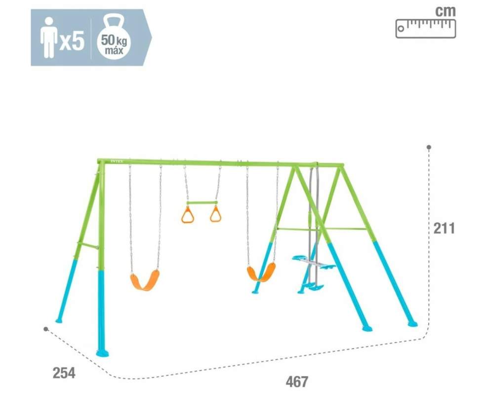 Intex 44130, Качели, кольца 442x235x200см, 4-в-1, 3 - 10 лет