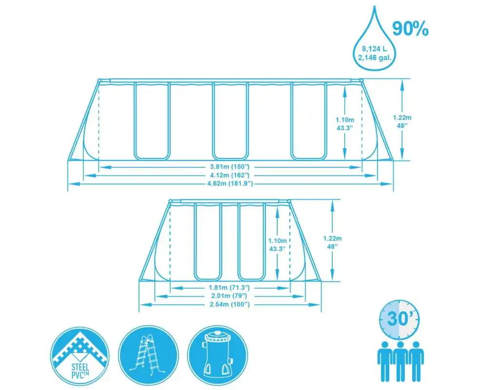 Bestway 56456, каркасний басейн 412 x 201 x 122 см Ultra Frame Rectangular