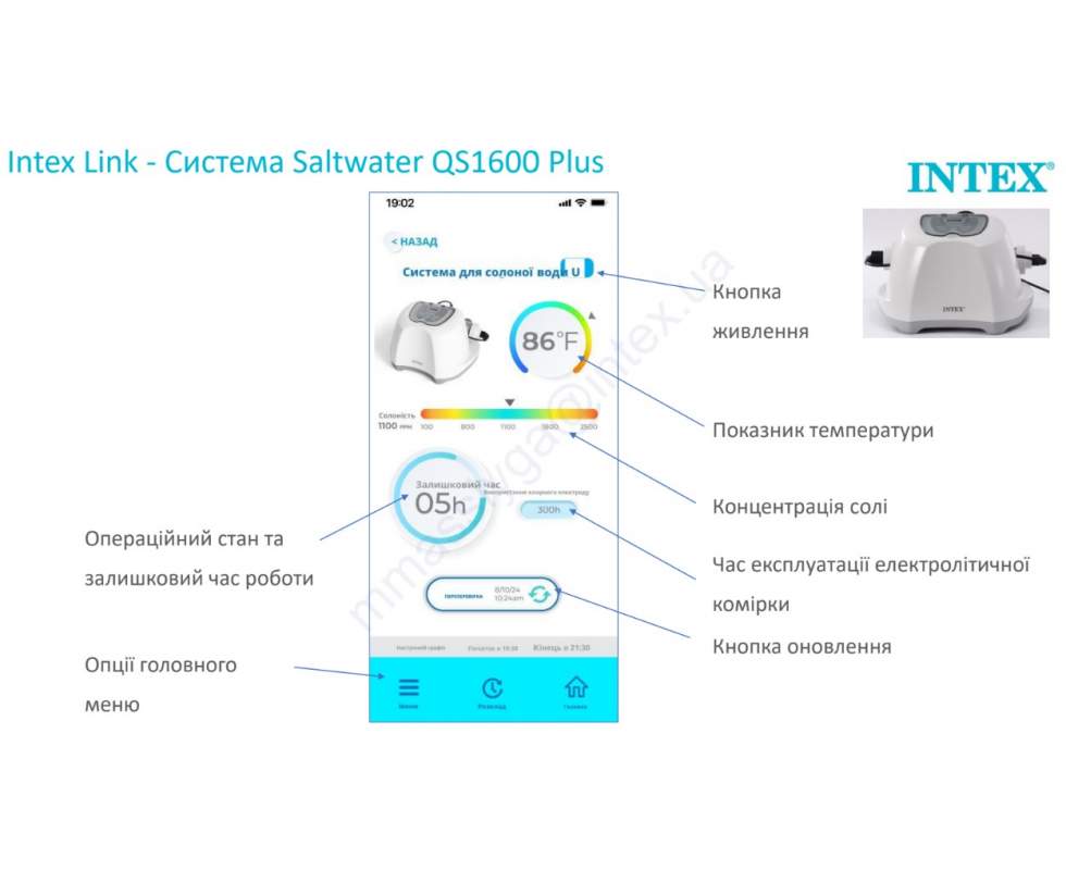 - Intex 26690, хлоргенератор QS1600Plus with WiFi 16 г/ч для басейнів до 68000л