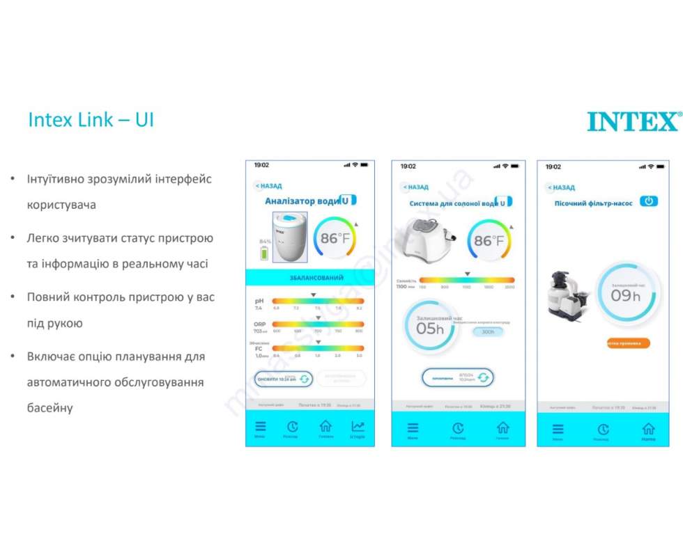 Дозволяє відмовитися від використання хімічних засобів для очищення і знезараження води, призначений для каркасних і надувних басейнів Intex. Призначений для басейнів до 68000 літрів.