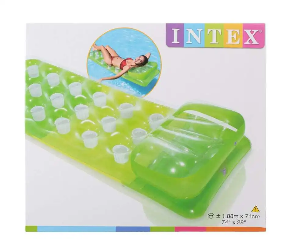 - Intex 58890-green, надувний матрац для плавання 188x71см. Зелений
