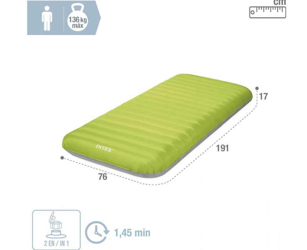 Intex 64097, надувний матрац 191 x 76 x 17 см кемпінговий, тканинний з USB-насосом
