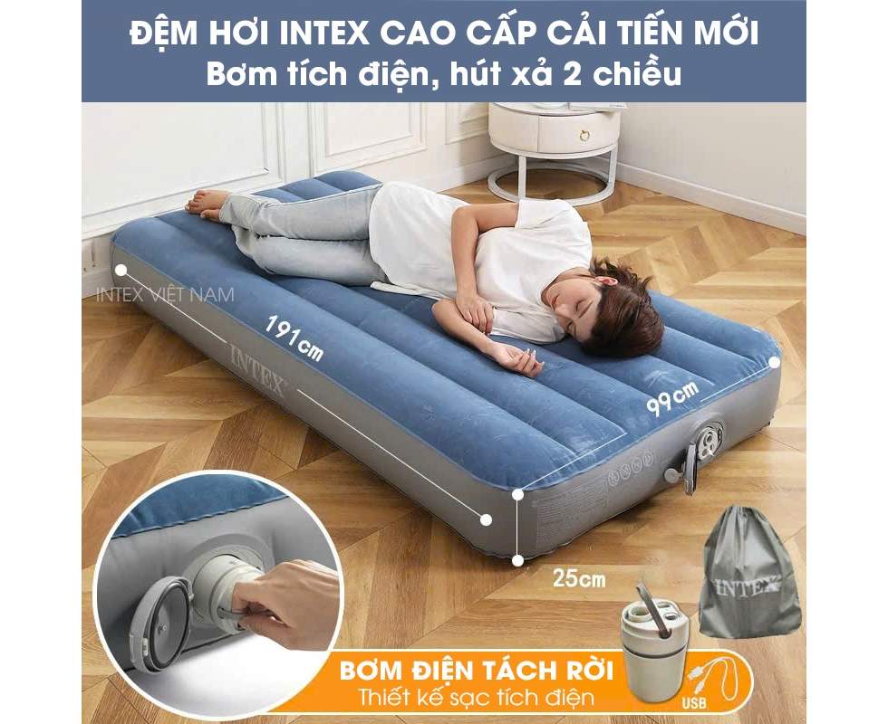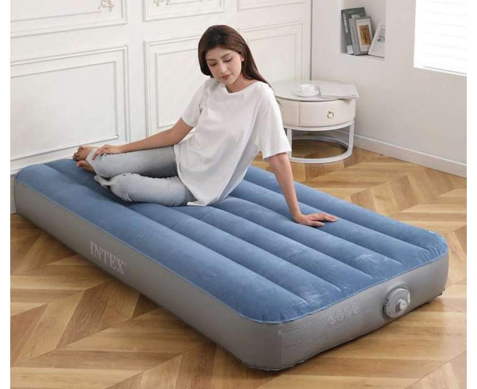- Intex 64187, надувной матрас 191 x 99 x 25 см со съемным аккумуляторным насосом Prestige Downy withRechargeable Pump