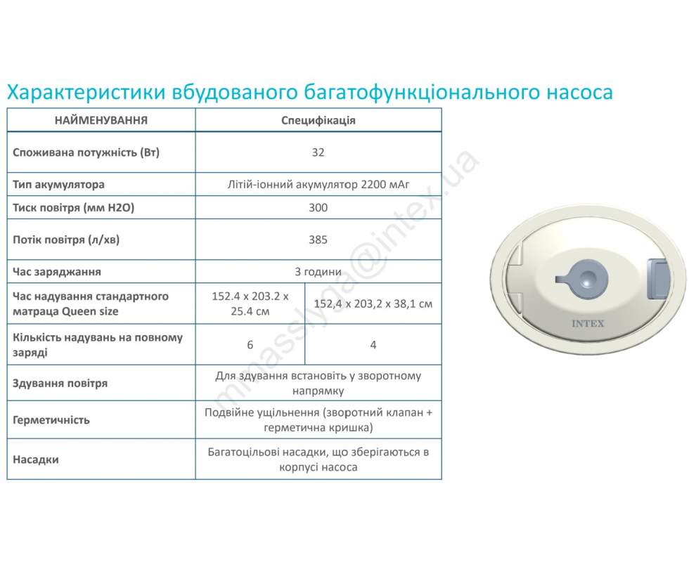 ⚫ У комплекті — знімний вбудований багатофункціональний насос з можливістю підзарядки
