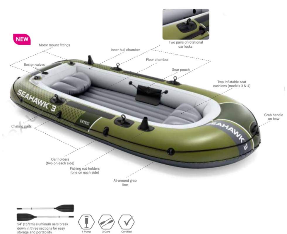 Intex 66332, Надувний човен SEAHAWK 2 Set (68347) 236x114x41см, 2-х містна